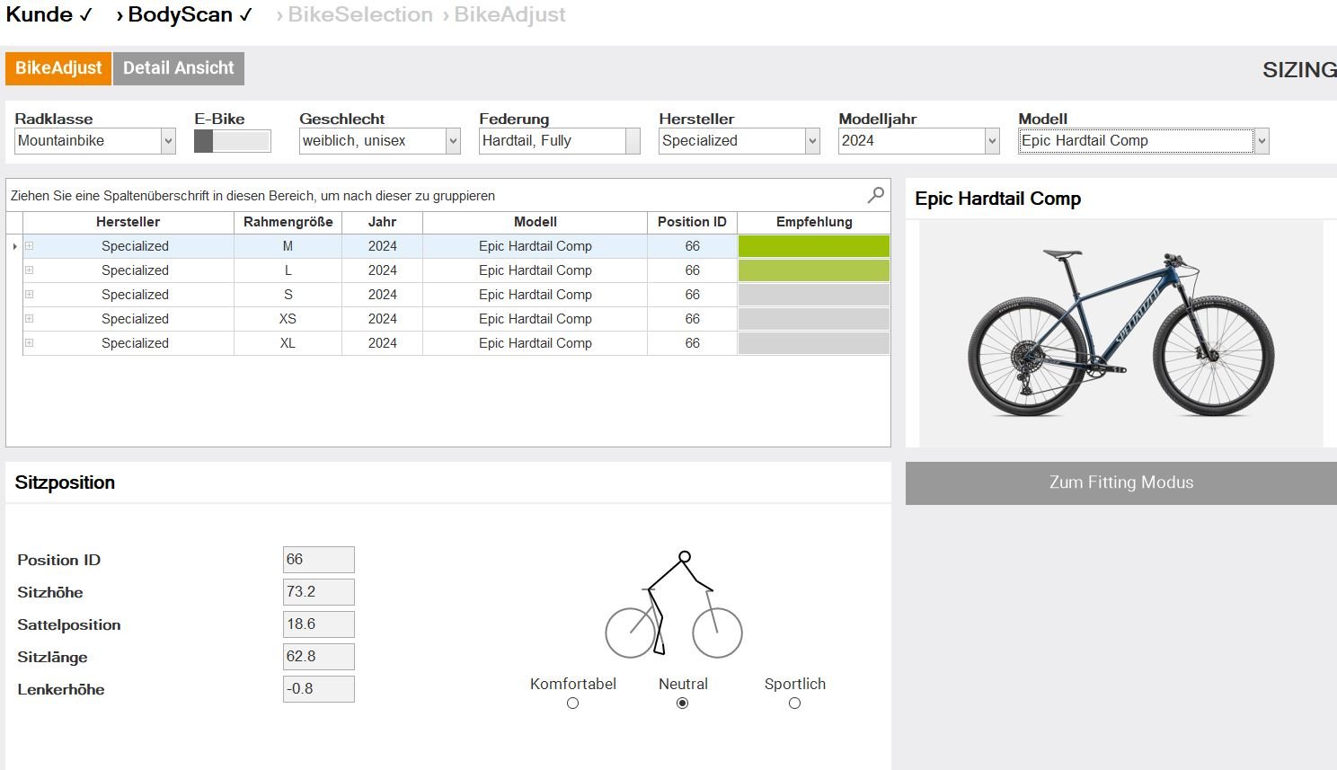 Wir erläutern dir detailliert jedes Fahrradmodell, dessen technische Merkmale und die jeweiligen Unterschiede. Während der Beratung wirst du mit Hilfe modernster Laser-Bikefitting-Technologie professionell vermessen. Anschließend präsentieren wir dir passende Fahrräder, die du gerne testen kannst. Ein weiteres Highlight unserer Beratung ist die professionelle Sitzknochenvermessung, die gewährleistet, dass du garantiert schmerzfrei Rad fahren kannst.